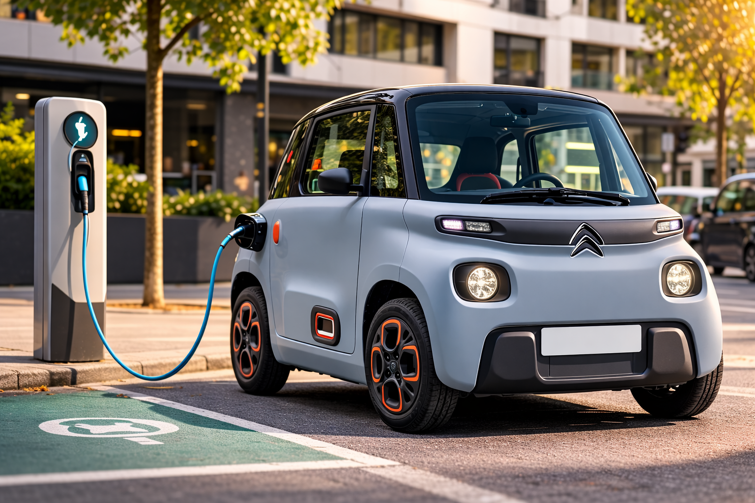 La Citroën Ami est l’une des VSP électriques les plus connues. Le constructeur annonce environ 75 km d’autonomie grâce à une batterie de 5,5 kWh.