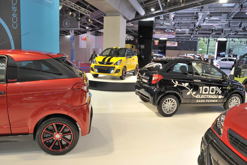 Les visiteurs du Mondial de l’Auto ont pu les remarquer discrètement sur le stand Aixam : la marque s’apprête à doubler sa gamme de VSP « thermiques » (entendez « diesel » !) par des « e-Aixam » à motorisations électriques. A vrai dire, ce n’est pas la première fois qu’Aix-les-Bains propose ce genre d’initiative : outre les Mega Multitruck et e-Worker ainsi équipés, on compte aussi la berline City (sur base Crossline), qui marie batteries lithium-ion et puissance de quadricycle lourd. Sans parler de prototypes qui avaient été dévoilés ça et là dans le passé, sur base 325i ou A540… Cette fois, le basculement vers les batteries lithium semble se faire pour de bon pour des véhicules à destination des particuliers, à fortiori en « sans permis », ou l’offre de modèles « tourisme » est relativement limitée (Estrima, Little, Renault).