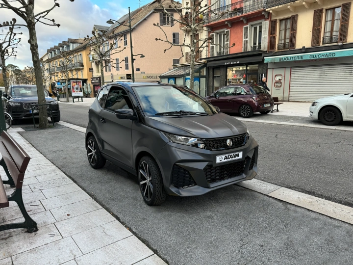 Pilier de l’offre Aixam, la City incarne depuis plusieurs années l’équilibre parfait entre compacité, équipement et polyvalence. En 2025, elle poursuit sa carrière au sein de la génération Ambition, sans bouleverser une recette qui a largement fait ses preuves, tout en laissant une place de plus en plus importante à la motorisation électrique.