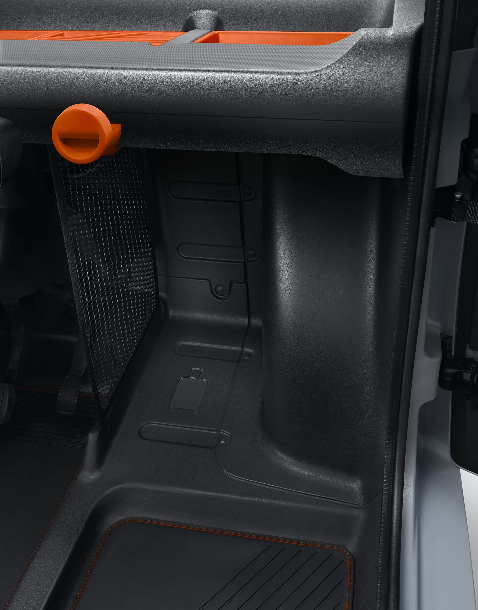 Les réactions sont donc plus celles d’une voiture traditionnelle que d’une voiturette, ce qui n’empêche pas la conduite de se révéler dépaysante. Car on est assis loin en arrière, à un bon mètre d’un pare-brise très vertical. Pour autant, la visibilité est bonne, du fait de la très large surface vitrée. On aurait craint que tout cela ne transforme l’habitacle en véritable serre, mais notre essai d’une vingtaine de minutes par un jour ensoleillé ne nous a pas infligé de suée. L’ouverture des vitres semble a priori suffisante. Côté confort, la suspension se révèle assez sèche, mais tout de même bien plus vivable que celle d’un Twizy. C’est très correct pour la catégorie.