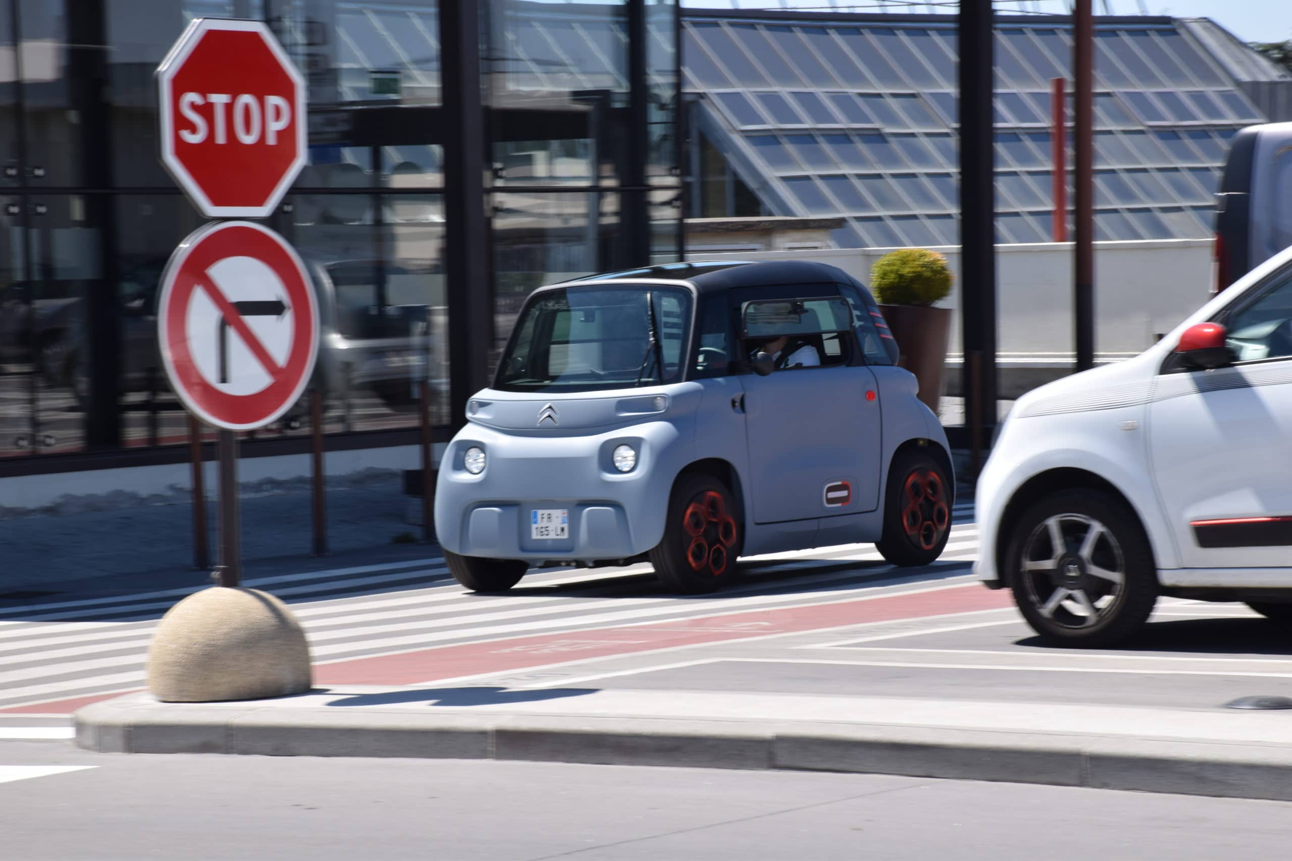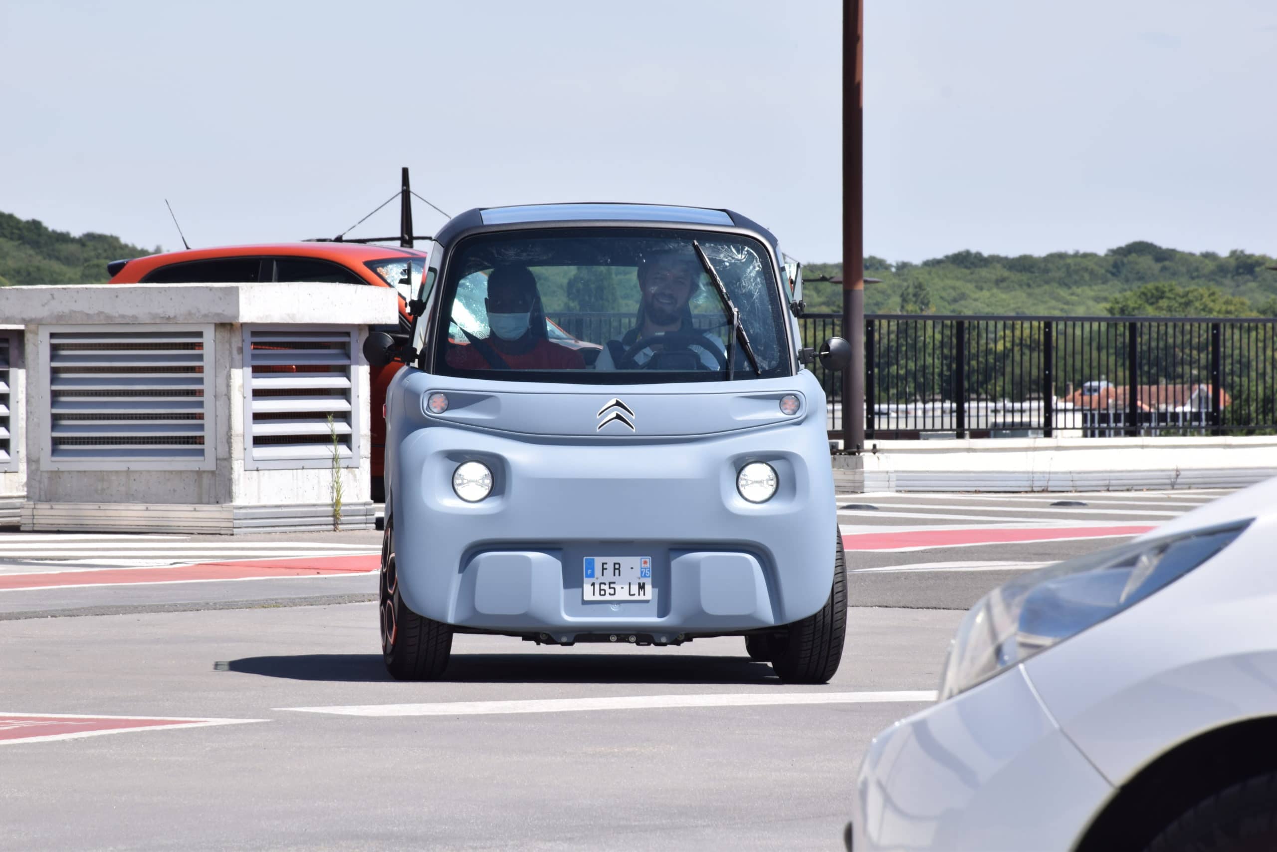 Autre motif d’étonnement : le bruit du moteur électrique, assez sensible (mais tout à fait supportable) à bord, malgré un silence total à l’extérieur. Et il y les clignotants d’un autre âge, puisqu’ils ne s’éteignent pas automatiquement lorsque l’on revient en ligne. En somme, les quelques contraintes imposées par ce modèle apparaissent plutôt acceptables étant donné son tarif extrêmement faible, à partir de 6.000 € une fois le bonus écologique déduit. Reste à voir s’il est possible de vendre des milliers d’Ami sans permis, qui ne dépassent pas 45 km/h et n’ont accès ni aux voies rapides ni au périphérique. Rappelons en effet que Renault vend la majorité de ses Twizy en version quadricycle lourd, limitée à 80 km/h, preuve que la clientèle est bien différente de celle des voitures sans permis traditionnelles. Citroën ne s’interdit pas à l’avenir de proposer une telle variante, en cas de succès.