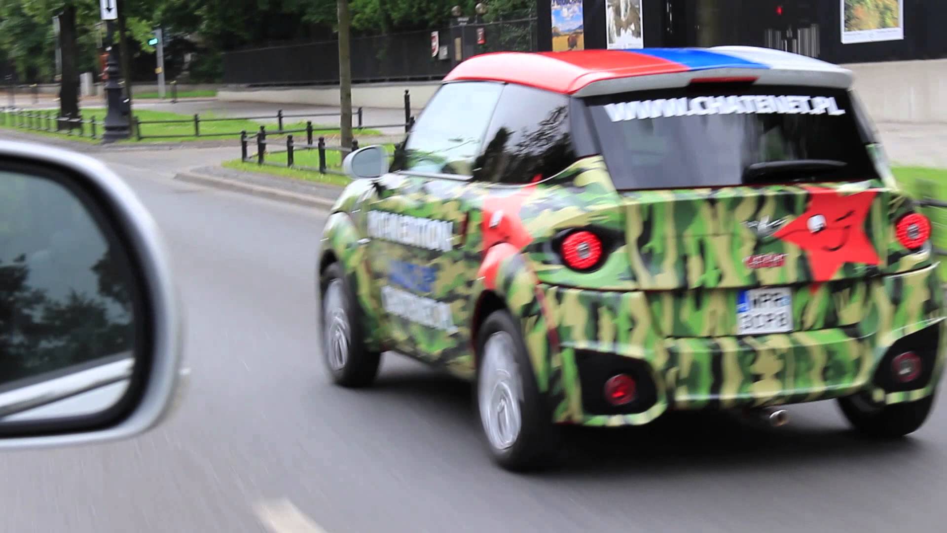 Voilà un bien étrange hommage fait par un distributeur polonais. Pour rendre hommage au président russe, cette Chatenet a été recouverte d’autocollants reproduisant un camouflage militaire, rappelant en cela les Smart décorées par le créateur de mode Jean-Charles de Castelbajac. Le toit est habillé du drapeau russe et quelques étoiles rouges émaillent la déco. Au final, l’ensemble n’est pas désagréable à l’œil, quoique politiquement connoté.