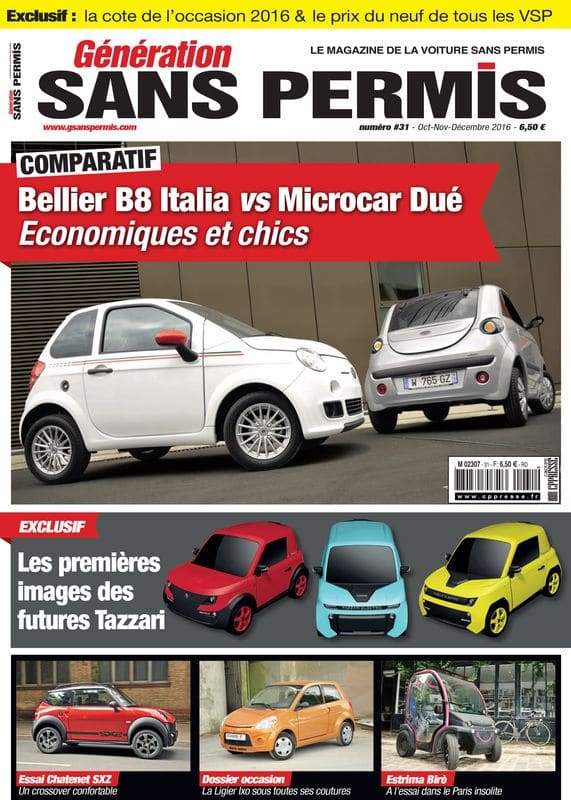 Le n°31 de Génération sans Permis arrive en kiosques le 24 septembre. Au programme de ce numéro de rentrée, le plein de nouveautés, d’essais de voiture sans permis et de reportages… Et même des exclu concernant une nouveauté électrique italienne, la Tazzari Zero.